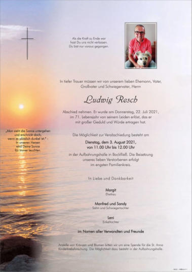 Für dich lieber Ludwig war Freundschaft und Geben das Wichtigste im Leben -